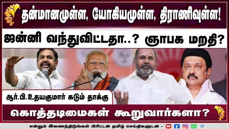 தன்மானமுள்ள, மானமுள்ள, யோகியமுள்ள, திராணிவுள்ள முதலமைச்சர் மூன்றாண்டு ஏன் நிதி ஆயோக் கூட்டத்தை புறக்கணித்தார். அவருக்கு ஜன்னி காய்ச்சல் வந்துவிட்டதா இல்லை ஞாபக மறதி வந்துவிட்டதா என்ன காரணம். அவர் கூறவில்லை என்றாலும் அவரது கொத்தடிமைகள் கூறட்டும் என தமிழ்நாட்டு மக்கள் கேட்கிறார்கள் என ஆர்.பி.உதயகுமார் தஞ்சாவூரில் பேட்டி.