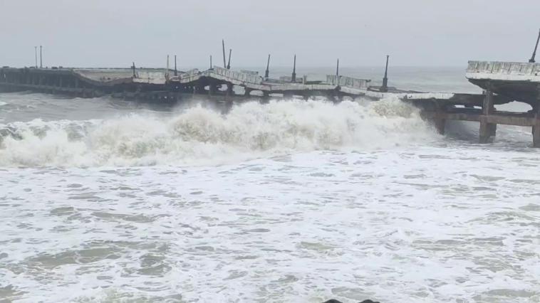 புதுச்சேரியில் சீற்றத்துடன் காணப்படும் கடல். 10 அடிக்கு மேல் கடல் அலைகள்