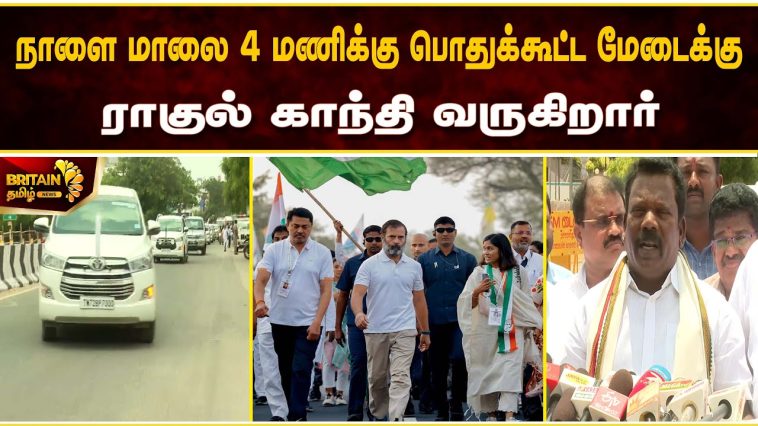 நாளை மாலை 4 மணிக்கு பொதுக்கூட்ட மேடைக்கு வருகிறார் ராகுல் காந்தி வருகிறார் . பிரம்மாண்ட பொதுக்கூட்ட மேடையில் திருநெல்வேலி காங்கிரஸ் வேட்பாளர் ராபர்ட் ப்ரூஸ், மற்றும் இந்தியா கூட்டணி சார்பில் போட்டியிடும் தூத்துக்குடி வேட்பாளர் கனிமொழி, தென்காசி வேட்பாளர் ராணிஸ்ரீகுமார், மதுரை வேட்பாளர் வெங்கடேசன், விருதுநகர் வேட்பாளர் மாணிக் தாகூர், சிவகங்கை வேட்பாளர் கார்த்திக் சிதம்பரம், கன்னியாகுமரி வேட்பாளர் விஜய் வசந்த் ஆகியோரை ஆதரித்து பரப்புரை மேற்கொள்கிறார்.