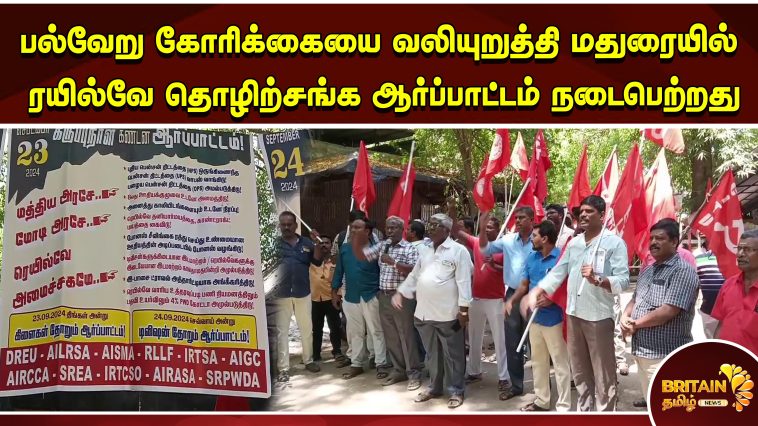 பல்வேறு கோரிக்கையை வலியுறுத்தி மதுரையில் ரயில்வே தொழிற்சங்க ஆர்ப்பாட்டம் நடைபெற்றது