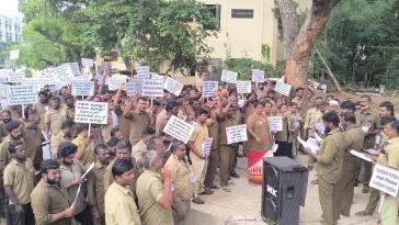 பல்வேறு கோரிக்கையை வலியுறுத்தி மதுரையில் ரயில்வே தொழிற்சங்க ஆர்ப்பாட்டம் நடைபெற்றது