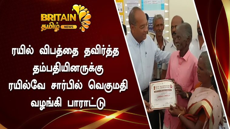 ரயில் விபத்தை தவிர்த்த தம்பதியினருக்கு ரயில்வே சார்பில் வெகுமதி வழங்கி பாராட்டு