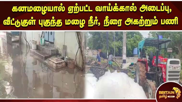 கனமழையின் காரணமாக மழை நீர் குடியிருப்பு பகுதிகளுக்குள் புகுந்த மழை நீர்