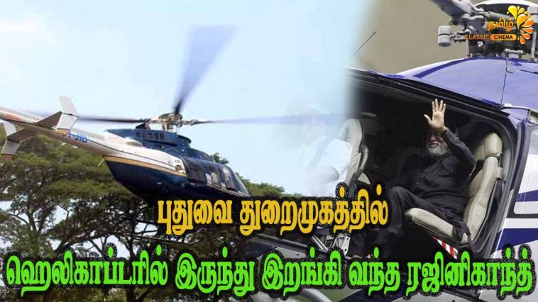 புதுவை துறைமுகத்தில் ஹெலிகாப்டரில் இருந்து இறங்கி வந்த ரஜினிகாந்த்
