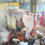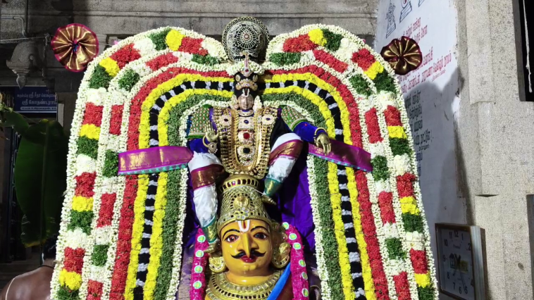 முன்னதாக பெருமாளுக்கு பெருந்தீபாராதனைகள் காண்பிக்கப்பட்டு, திருமங்கையாழ்வார் அருளிய தமிழ்ப் பாசுரங்களை ஓதுவார்கள் பாடினர்.