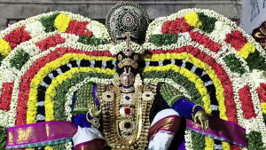 முன்னதாக பெருமாளுக்கு பெருந்தீபாராதனைகள் காண்பிக்கப்பட்டு, திருமங்கையாழ்வார் அருளிய தமிழ்ப் பாசுரங்களை ஓதுவார்கள் பாடினர்.