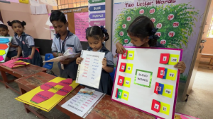 1 முதல் 5-ம் வகுப்பு வரை மாணவர்களின் தமிழ் மற்றும் ஆங்கிலம் வாசித்தல் திறனை வெளிப்படுத்தும் வகையில் கதைகள், செய்திதாள், பத்திரிக்கை போன்றவற்றை மாணவர்கள் படித்து காட்டினர்.
