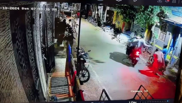 பின்னர் பொருட்கள் வாங்கி விட்டு தங்களுடைய இரு சக்கர வாகனத்தில் வீடு திரும்பிய நிலையில் வீட்டு வாசலில் இரு சக்கர வாகனத்தை நிறுத்தம் நேரத்தில் கண் இமைக்கும் வேளையில் R15 ரக இரு சக்கர வாகனத்தில் வந்த 2 இளைஞர்கள் மஞ்சுளா கழுத்தில் அணிந்திருந்த நகையை பறித்தனர், அந்த நேரத்தில் மஞ்சுளா நகையை தனது கைகளால் இருக்கமாக பிடித்து கொண்டதால் மஞ்சுளாவை தர தரவென 100 மீட்டர் தொலைவிற்கு இழந்து சென்றனர்,