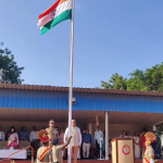 பின்னர் கழியில் கொடி கட்டப்பட்டு கிழக்கு கோபுரத்தின் உச்சியில் தேசியக்கொடி ஏற்றி மரியாதை செலுத்தப்பட்டது.