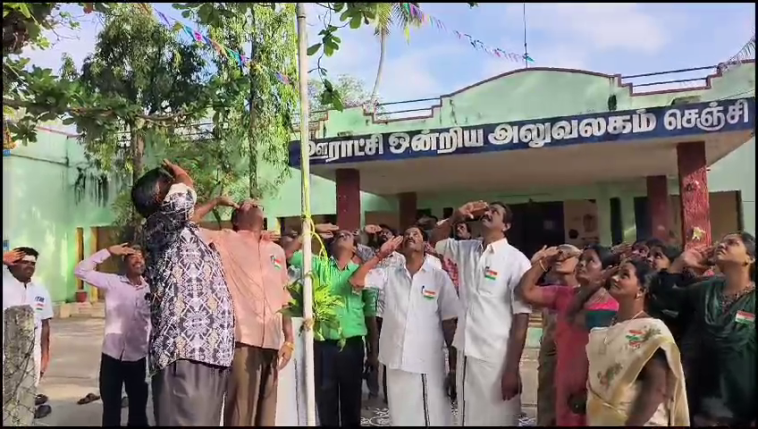 செஞ்சி தொகுதி சட்டமன்ற உறுப்பினர் செஞ்சி மஸ்தான் முன்னிலையில் செஞ்சி வட்டாட்சியர் ஏழுமலை,வட்டார வளர்ச்சி அலுவலர் நடராஜன்,பேரூராட்சி செயல் அலுவலர் கோபால், போன்றோர்தேசிய கொடியினை ஏற்றி வைத்து மரியாதை செலுத்தினார்.