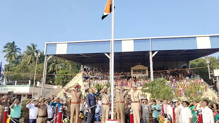 நாட்டின் 76 ஆவது குடியரசு தினவிழாவை முன்னிட்டு தேசிய கொடியை ஏற்றி வைத்து காவல்துறை அணிவகுப்பு மரியாதையை ஏற்றுக்கொண்ட மாவட்ட ஆட்சியர், மூவர்ண பலூன்களை பறக்க விட்டார் :-