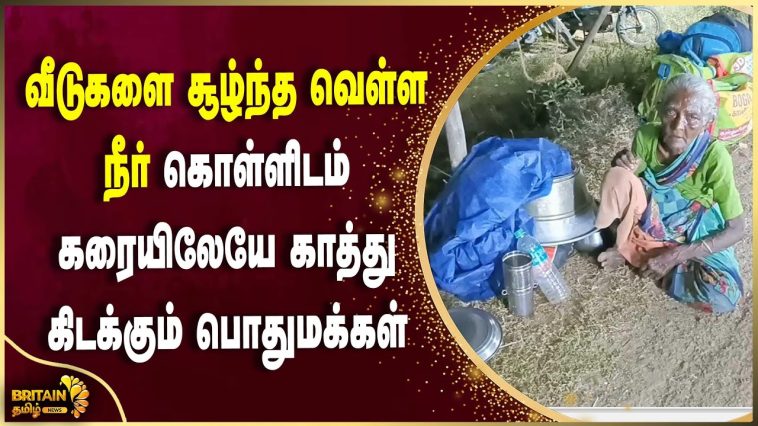 கொள்ளிடம் ஆற்றின் கரையோர வீடுகளை சூழ்ந்த வெள்ள நீர் கரையிலேயே காத்து கிடக்கும் பொதுமக்கள்