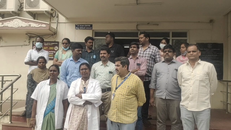 மயிலாடுதுறை அரசு மருத்துவமனையில் குழந்தை உயிரிழந்த விவகாரத்தில் அரசு மருத்துவரை அவசரகதியில் சஸ்பென்ட் செய்த சுகாதாரப்பணிகள் இணை இயக்குநர் மீது நடவடிக்கை எடுக்க கோரியும், வெளிமாவட்ட சிறப்பு மருத்துவர்களை கொண்டு விசாரணை நடத்த கோரி புறநோயாளிகள் சிகிச்சை பிரிவு பணிகளை புறக்கணித்து அரசு மருத்துவர்கள் சங்கத்தினர் போராட்டம்
