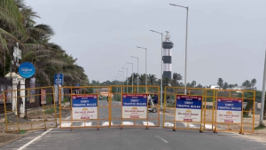 புதுச்சேரி பாண்டி மெரினா கடற்கரைக்கு செல்லக்கூடிய சாலை மூடல்…