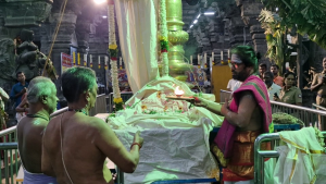 தொடர்ந்து சங்கரலிங்க சுவாமி சன்னதி முன்பு அமைந்துள்ள கொடிமரத்தில் மஞ்சள் பால், திரவியம் பண்ணீர், விபூதி, சந்தனம் உள்ளிட்ட வாசனா திறவியங்கள் கொண்டு சிறப்பு அபிஷேகம் நடைபெற்றது.