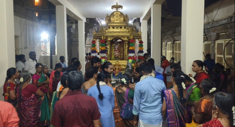 சுமார் 8 லட்சம் மதிப்பீட்டில் கோவில் நிர்வாகம் தங்கத்தேர் பராமரிப்பு பணிகளை மேற்கொண்ட நிலையில் பாதி வழியில் சக்கரம் சுழல மறுத்து தங்கத்தேர் நடுவழியில் நின்ற சம்பவம் பக்தர்களிடம் பெரும் அதிர்ச்
