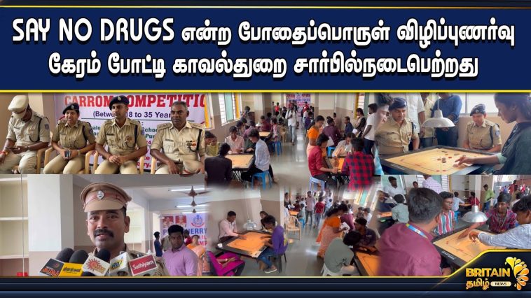 புதுச்சேரியில் காவல்துறை சார்பில் SAY NO DRUGS என்ற கருத்தை மையமாக வைத்து பள்ளி இடைநிற்றல் குற்ற பின்னணி உள்ளவர்களுக்கான போதைப்பொருள் எதிர்ப்பு விழிப்புணர்வு கேரம் போட்டி நடைபெற்றது