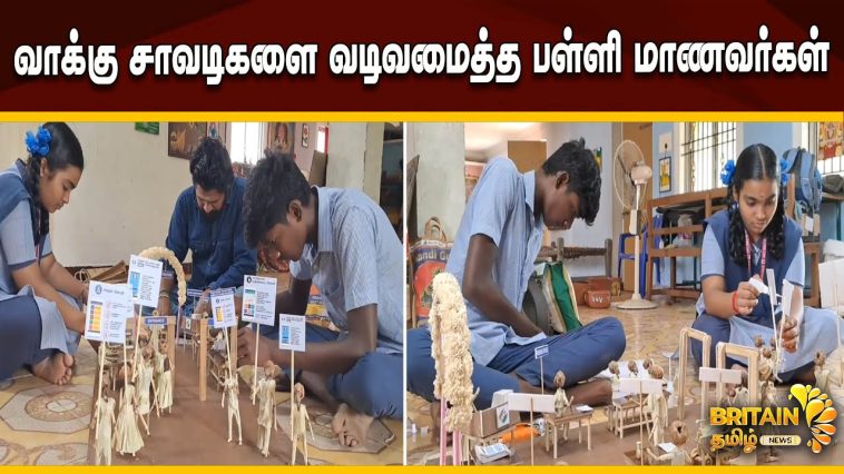 தேங்காய் குரும்பு, சோலை இலை, மூங்கில், பாக்கு தட்டுகளைக் கொண்டு மாதிரி வாக்கு சாவடிகளை வடிவமைத்த பள்ளி மாணவர்கள்…