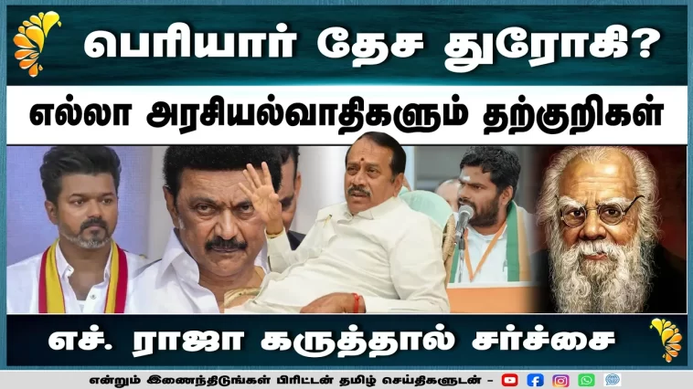தற்போது சீமான் தொடர்ச்சியாக பெரியாரைப் பற்றி பேசி வருகிறார். ஆனால், சந்தேகம் இல்லாமல் ஈவேரா பத்தி முதலில் பேசியது எச். ராஜா தான் பாஜக தான். ஈவேரா தேச துரோகி, 47 ஆகஸ்ட் 15 துக்க தினம், கருப்புக்கொடி ஏற்ற வேண்டும் என்று சொல்லியவர். தேசத்துரோகி ,ஈவேரா தமிழ் விரோதி, தமிழ் மீது பற்று உள்ள எவரும் குச்சியால் கூட ஈவேராவை தொட மாட்டான், தமிழ் காட்டுமிராண்டி மொழி, தமிழை படிக்காதீர்கள் தமிழிலை படித்தால் பிச்சைக்காரனாக கூட இருக்க முடியாது, வேலைக்காரியோடு ஆங்கிலத்தில் பேசு, பொண்டாட்டியோடு ஆங்கிலத்தில் பேசு என்று பேசியவர் ஈவேரா, ஈவேரா ஒரு தலித் விரோதி, பட்டியலின சமூக மக்களின் முதல் எதிரி ஈவெரா,