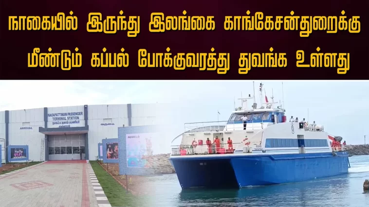 நாகையில் இருந்து இலங்கை காங்கேசன்துறைக்கு மீண்டும் கப்பல் போக்குவரத்து துவங்க உள்ளது: அந்தமானில் தயாராகியுள்ள சிவகங்கை கப்பல் மே10 ஆம் தேதி நாகை துறைமுகம் வரவுள்ளது.