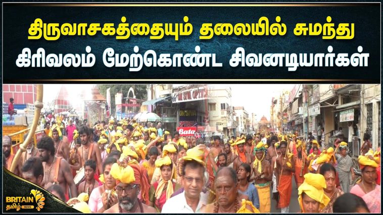 உலக நன்மைக்காகவும், மழை வர வேண்டியும் அலங்கரிக்கப்பட்ட நடராஜபெருமானுடன் திருமுடியையும், திருவாசகத்தையும் தலையில் சுமந்து கிரிவலம் மேற்கொண்ட சிவனடியார்கள்…
