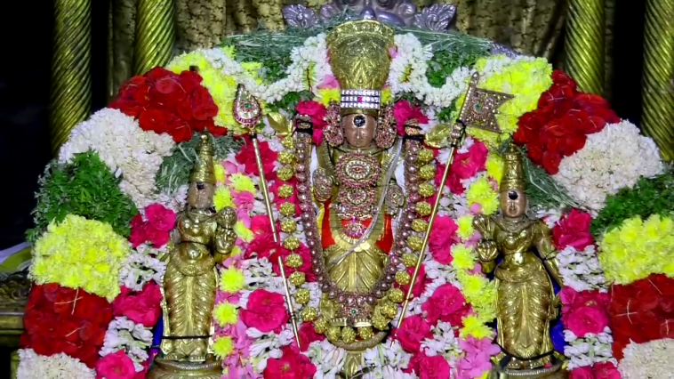 விழுப்புரம் மாவட்டம், திண்டிவனம் அடுத்த மயிலம் ஸ்ரீ வள்ளி தெய்வானை சமேத சுப்பிரமணிய சுவாமி கோவிலில் மாசி மாத கிருத்திகையை முன்னிட்டு ஸ்ரீ வள்ளி தெய்வானை சமேத சுப்பிரமணிய சுவாமி வண்ண மலர்களால் அங்கரிக்கப்பட்டு தங்கக்கவசத்தில் ரம்யமாக பக்தர்களுக்கு காட்சியளித்தனர்.