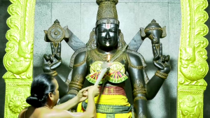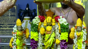 தொடர்ந்து மகாதிபாரதனை பஞ்சமுக தீபாரதனை, மங்கள ஆர்த்தியும் காண்பிக்கப்பட்டது. தொடர்ந்து தீர்த்த ப்ரசாத கோஷ்டி வைபவம் நடைபெற்றது. இதில் திரளான பக்தர்கள் கலந்து கொண்டனர்.