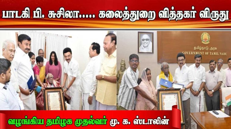 பாடகி பி சுசிலா ….. கலைத்துறை வித்தகர் விருது …வழங்கிய தமிழக முதல்வர்மு. க. ஸ்டாலின்