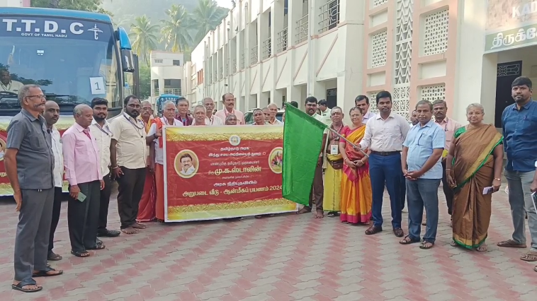 ஆறுபடை வீடுகளுக்கு ஆன்மீகச் சுற்றுலா பயணத்தை சார் ஆட்சியர் கொடி அசைத்து துவக்கி வைத்தார்