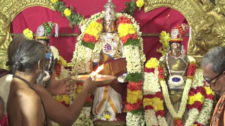 தொடர்ந்து பக்தர்கள் சீர்வரிசை பொருட்களை ஊர்வலமாக எடுத்து வந்து சமர்ப்பித்தவுடன் மாலை மாற்று வைபவம் கன்னிகாதானம் புனல் அணிவித்தல் பட்டு வஸ்திரம் சாற்றுதல் வைபவங்கள் நடைபெற்றன.