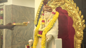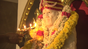 முன்னதாக சாய் பாபாவுக்கு பால் பன்னீர் கொண்டு அபிஷேகம் நடைபெற்றது.