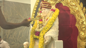 முன்னதாக சாய் பாபாவுக்கு பால் பன்னீர் கொண்டு அபிஷேகம் நடைபெற்றது.