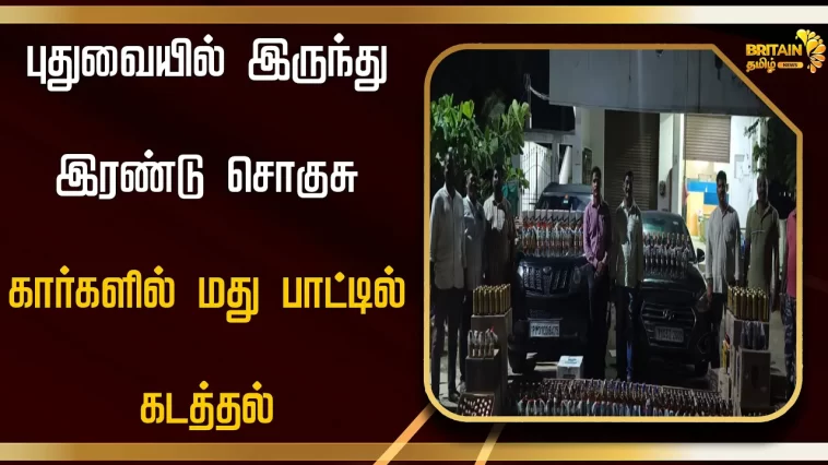 புதுவையில் இருந்து இரண்டு சொகுசு கார்களில் மது பாட்டில் கடத்தல்