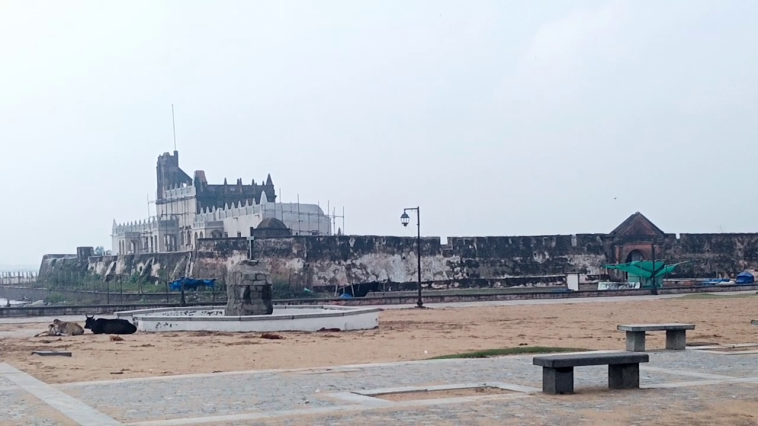 கனமழை மற்றும் கடல் சீற்றம் காரணமாக தரங்கம்பாடி டேனிஷ் கோட்டையில் மண் அரிப்பு
