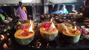 பைரவருக்கு சந்தன காப்பு சாத்தப்பட்டு, பால், பன்னீர், இளநீர், குங்குமம் உள்ளிட்டவை கொண்டு சிறப்பு அபிஷேக ஆராதனைகள் நடைபெற்றன.தொடர்ந்து திருமணத்தடை நீங்கவும், நினைத்த காரியம் கைகூடவும், தேங்காய், பூசணிக்காய், பாவற்காய் இவற்றில் தீபமிட்டு,காலை முதலே ஏராளமான பக்தர்கள் ஆலயத்தை சுற்றி 11 சுற்றுகள் வலம் வந்து வழிபட்டனர்.