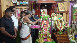 உலக அமைதி வேண்டி மகாபெரியவர் விக்ரகம் மற்றும் வெள்ளிப் பாதுகைக்கு மலர்களால் சிறப்பு அர்ச்சனை நடைப்பெற்றது.