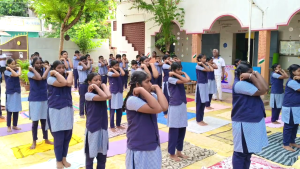 ஹோலி கிராஸ் பள்ளியில் மாணவர்களுக்கு சிறப்பு யோகா பயிற்சி.