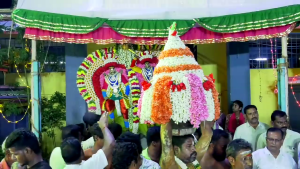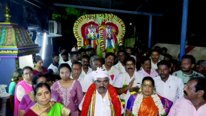 தொடர்ந்து கரகம் முதலில் கோயிலை வலம் வர தொடர்ந்து ஸ்ரீ கிருஷ்ணர் ஸ்ரீ பீமர் கோயிலை உட்பிரகாரம் வலம் வந்து பண்ண விளக்குகளால் அலங்கரிக்கப்பட்ட வாகனத்தில் பக்தர்களுக்கு காட்சி அளித்தனர்.
