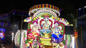 தொடர்ந்து கோயில் உட்பிரகாரம் வலம் வந்து வண்ண விளக்குகளால் அலங்கரிக்கப்பட்ட வாகனத்தில் இரவு வீதி உலா நடைபெற்றது. இதில் திரளான பக்தர்கள் கலந்து கொண்டனர்.