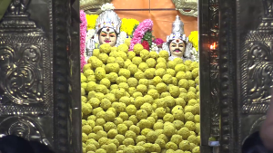 அதனைத் தொடர்ந்து இரவில் விநாயகா் சுவாமி அம்பாளுக்கு 1008 லட்டுகள் கொண்டு சிறப்பு அர்ச்சனை செய்யப்பட்டடது.