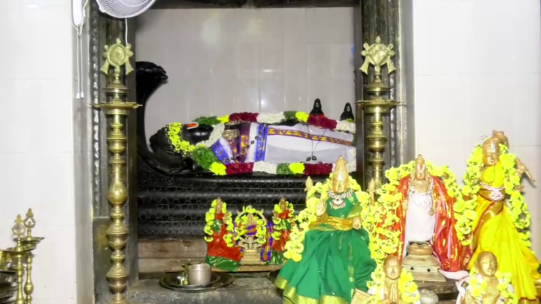 தொடர்ந்து உற்சவர் ஸ்ரீ பள்ளிகொண்ட பெருமாள் வண்ண மலர்கள் கொண்டு அலங்கரிக்கப்பட்டு கருட வாகனத்தில் பக்தர்களுக்கு காட்சியளித்தார்.