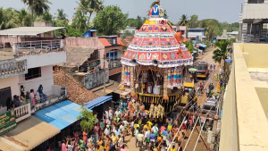 கும்பகோணத்தில் உலக பிரசித்தி பெற்ற கல்கருட தலமாகவும், 108 வைணவ தலங்களில் 20 வது தலமாக போற்றப்படும் நாச்சியார் கோவிலில் சீனிவாசப்பெருமாள் திருக்கோயிலில் பங்குனி திருத்தேரோட்டம் நடைபெற்றது. இதில் ஏராளமான பக்தர்கள் கலந்து கொண்டு தேரை வடம் பிடித்து இழுத்தனர்.
