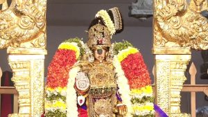 நம்பெருமாள் இன்று (பகல் பத்து) 5 ஆம் நாளில் – திருமாலை பிரபந்தம் செவிமடுக்க சௌரிக் கொண்டை சாற்றி;