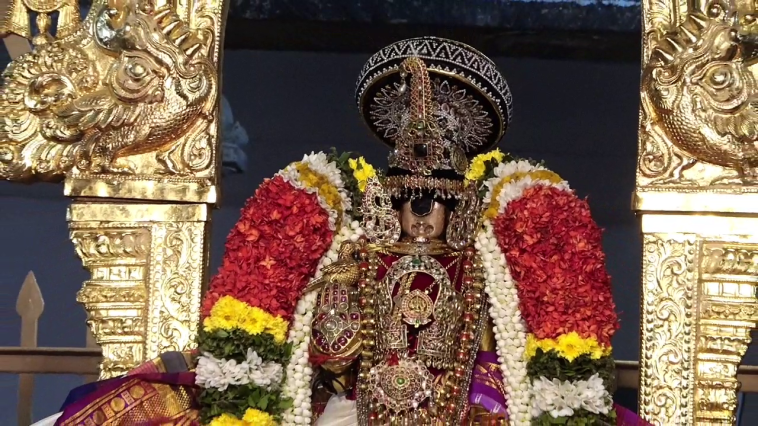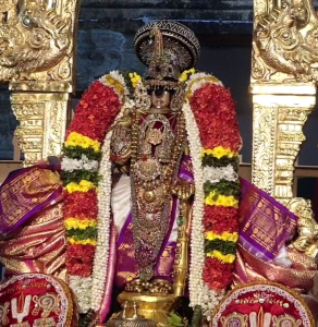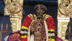 அதில் கோலக்கிளி எடுத்து சாற்றி, வெண்பட்டு அணிந்து பின் சேவையில் அண்டபேரண்ட பக்க்ஷி பதக்கம் அணிந்து சேவை சாத்திக்கிறார்…