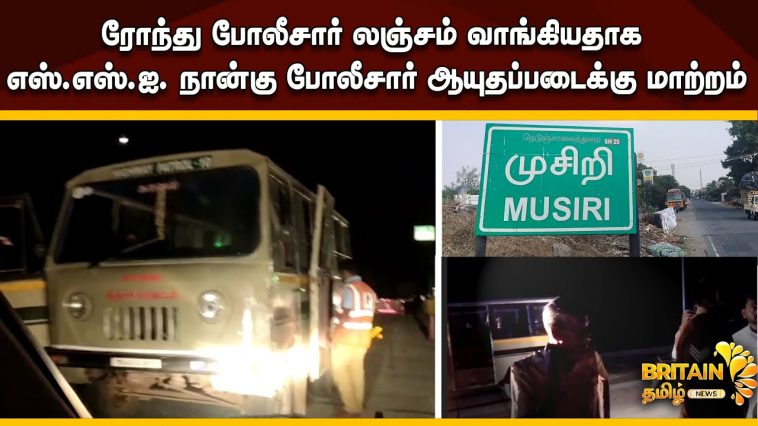 தொட்டியம் அருகே ரோந்து போலீசார் லஞ்சம் வாங்கியதாக சமூக வலைத்தளங்களில் வந்த வீடியோவால் இரண்டு எஸ்.எஸ்.ஐ.நான்கு போலீசார் ஆயுதப்படைக்கு மாற்றம்
