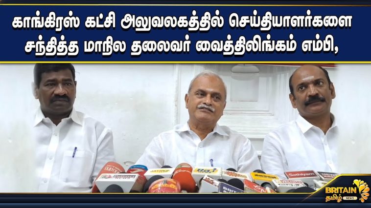 காங்கிரஸ் கட்சி அலுவலகத்தில் செய்தியாளர்களை சந்தித்த மாநில தலைவர் வைத்திலிங்கம் எம்பி