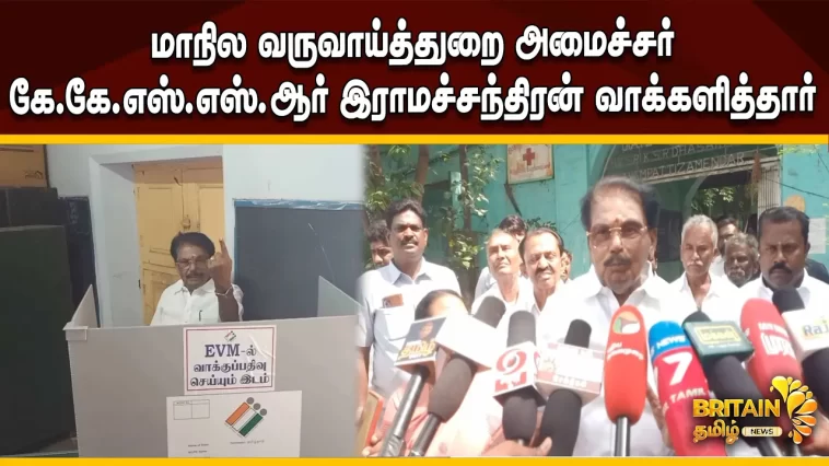 விருதுநகர் மாவட்டம் அருப்புக்கோட்டை அருகே தனது சொந்த ஊரான கோபாலபுரத்தில் மாநில வருவாய்த்துறை அமைச்சர் கே.கே.எஸ். எஸ்.ஆர் இராமச்சந்திரன் தனது மனைவி ஆதிலட்சுமியிடன் சென்று வரிசையில் நின்று வாக்களித்தார்.பின்னர் செய்தியாளர்களை சந்தித்த அமைச்சர்,விருதுநகர் பாராளுமன்ற தொகுதியில் வாக்காளர்கள் ஆர்வமுடன் வாக்களித்து வருவதாகவும்,இந்த ஆர்வம் தமிழக முதலமைச்சரின் நல்லாட்சிக்கு அங்கிகாரமாக இருக்கும் என்றும் நாடும் நமதே நாற்பதும் நமதே என்பதைப்போல 40 தொகுதிகளிலும் இந்தியா கூட்டணி வெற்றி பெற்று பிரதமரை தமிழக முதல்வர் தேர்ந்தெடுப்பார் என தெரிவித்தார்.