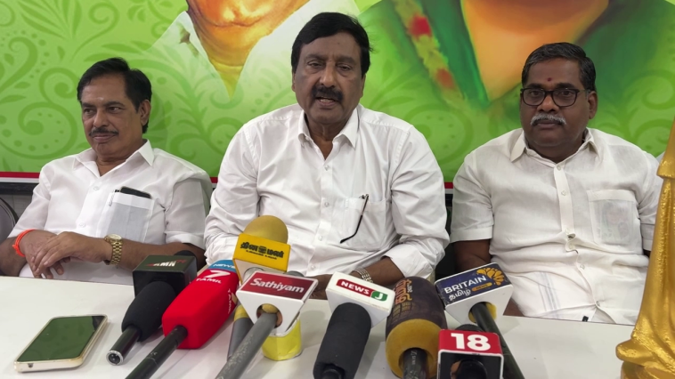 புதுச்சேரி அதிமுக தலைமை அலுவலகத்தில் செய்தியாளர்களை சந்தித்த மாநில செயலாளர் அன்பழகன்,