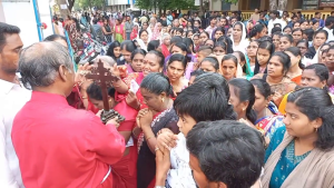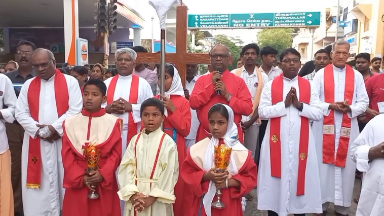 காரைக்காலில் புனித வெள்ளியை முன்னிட்டு நடைபெற்ற சிலுவை பாதை வழிபாடு
