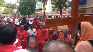 காரைக்காலில் புனித வெள்ளியை முன்னிட்டு நடைபெற்ற சிலுவை பாதை வழிபாடு